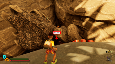 ゴミ箱到達後、ゴミ箱の北西側(タバコを加えたレモンの絵が目印)の近くに洞窟があるので、この中に入り、奥に進みます。