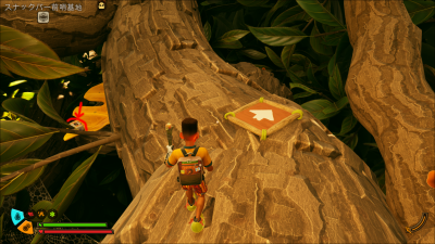 その後、正面右側に見えるかかしに続く木の枝の左側を進むとO.G.R.E.ラボの更に上に移動する事ができます。