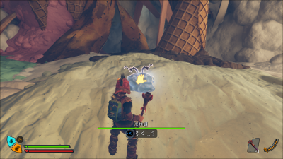 ベジガーデンエリア中央北側にあるランドマーク「ハンマー」の下に開いている洞窟に入り、